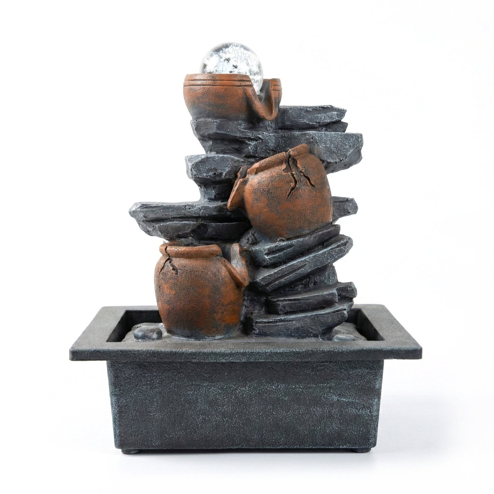 Fuente de agua jarrones y piedras